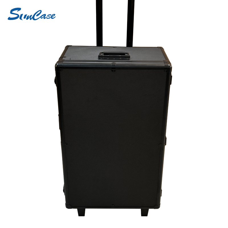 Customized Aluminum Trolley Case Full Black Aluminum Box with Wheels & Pull Rod